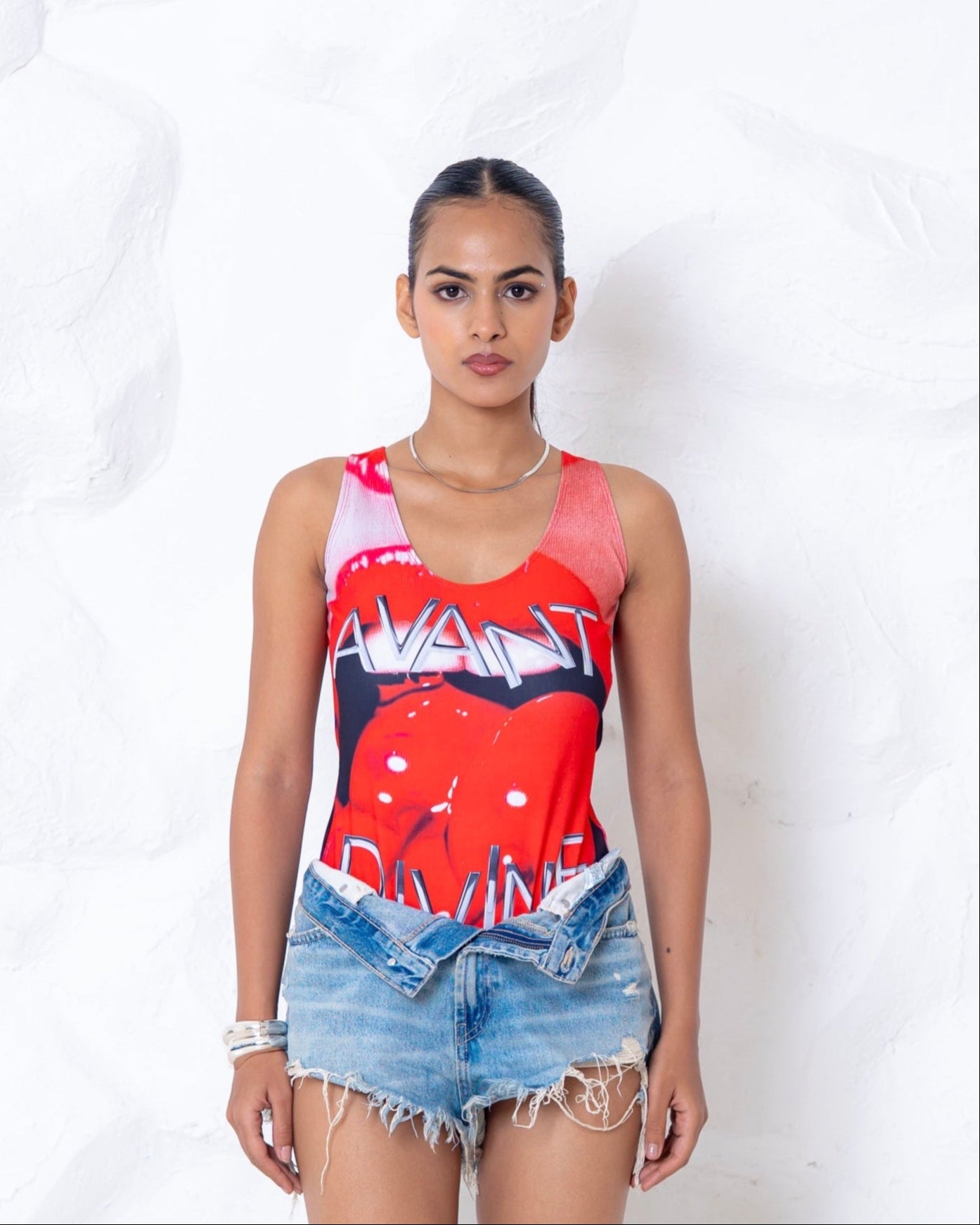 • Scarlet Seduction Bodysuit sculpts and moves with you, Crafted from premium heavy GSM stretchable body hugging polyspandex fabric. Featuring a vivid, high-quality bold red coloured digital print, a classic round neckline, and a daring open-back cut with a signature ring detail, it blends sophistication with bold allure.